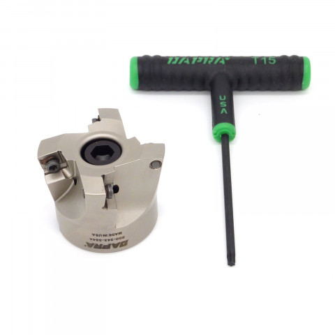 Extended description: Heavy-Feed Shell Mill, 2.0 Inch Dia., 4-Flute. W/T-15 T-Handle Wrench